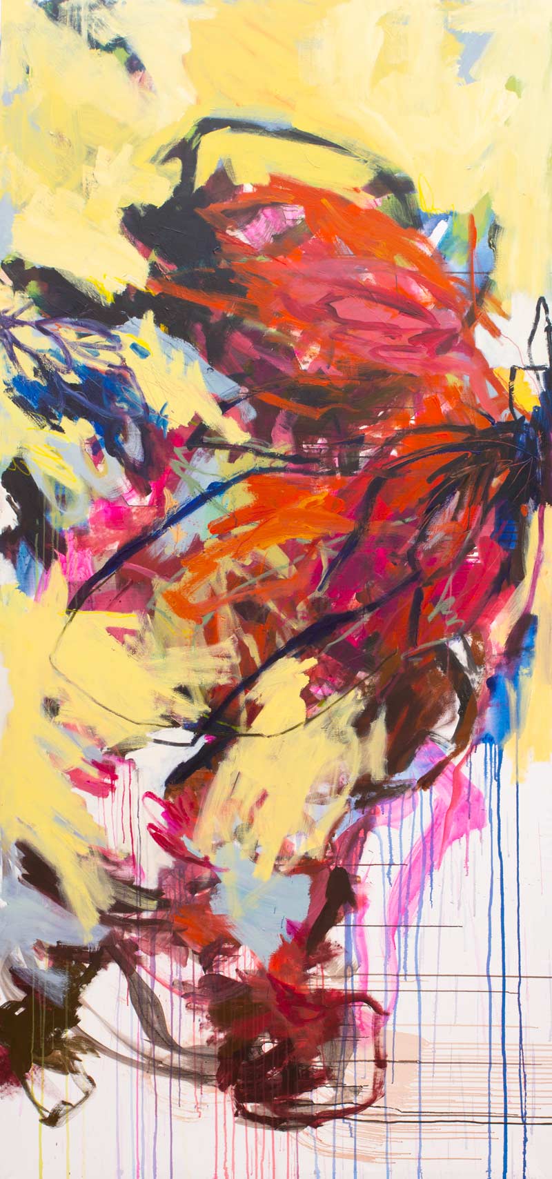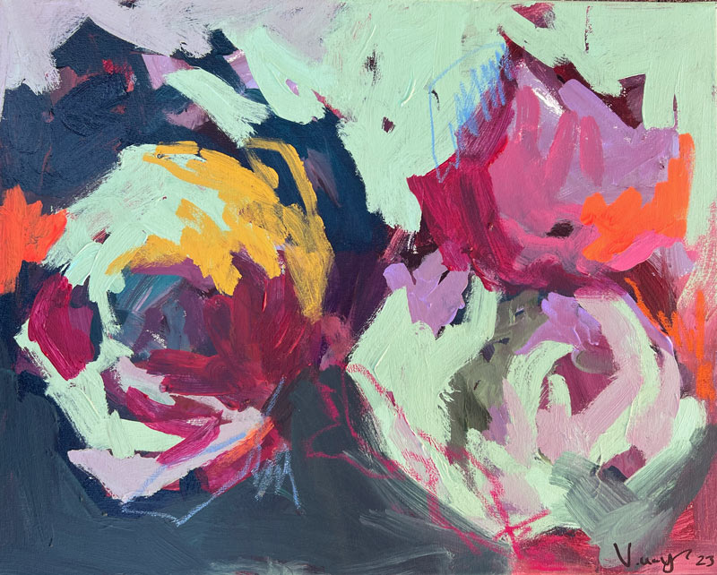Was sie verbindet: die Entscheidung, mich nicht zurückzuhalten. Ich wollte eine Farbexplosion des Lebens schaffen. Und ich wollte mich meinen eigenen Schwellenmomenten stellen. Das große Bild Someone That Turns Your Heart Around entstand live in der Galerie – 300 x 150 cm, vor Publikum. Ich wusste, dass es unbequem werden würde. Aber genau darum ging es: um Transformation durch das Tun.
