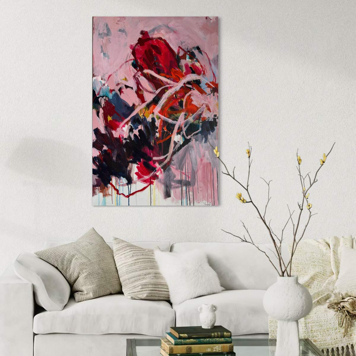 Gemeinsam besprechen wir deine Fragen zu Größe, Wirkung, Raumwirkung – und wenn du möchtest, erstelle ich dir kostenlos eine digitale Vorschau des Bildes in deinem Raum (Hängeservice). Dafür brauchst du nur ein Foto deiner Wand.