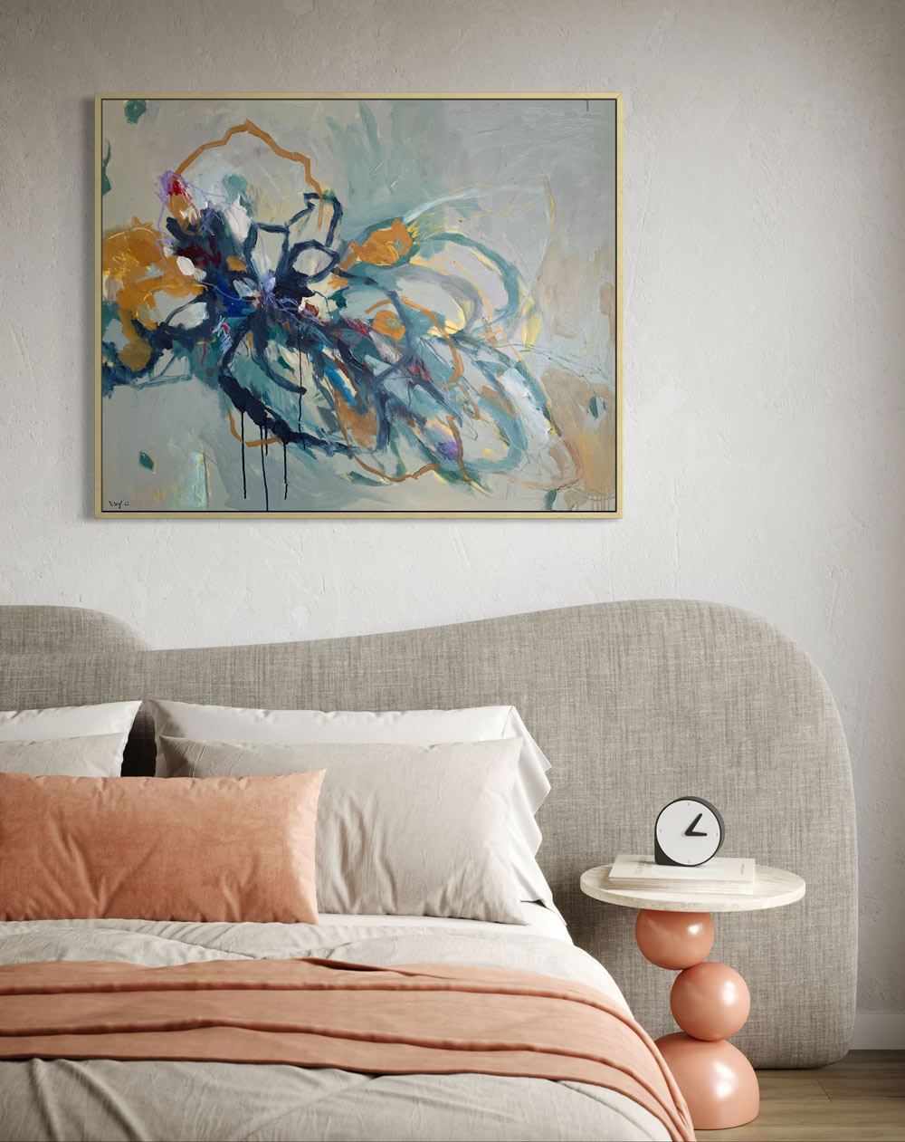 Gemeinsam besprechen wir deine Fragen zu Größe, Wirkung, Raumwirkung – und wenn du möchtest, erstelle ich dir kostenlos eine digitale Vorschau des Bildes in deinem Raum (Hängeservice). Dafür brauchst du nur ein Foto deiner Wand.