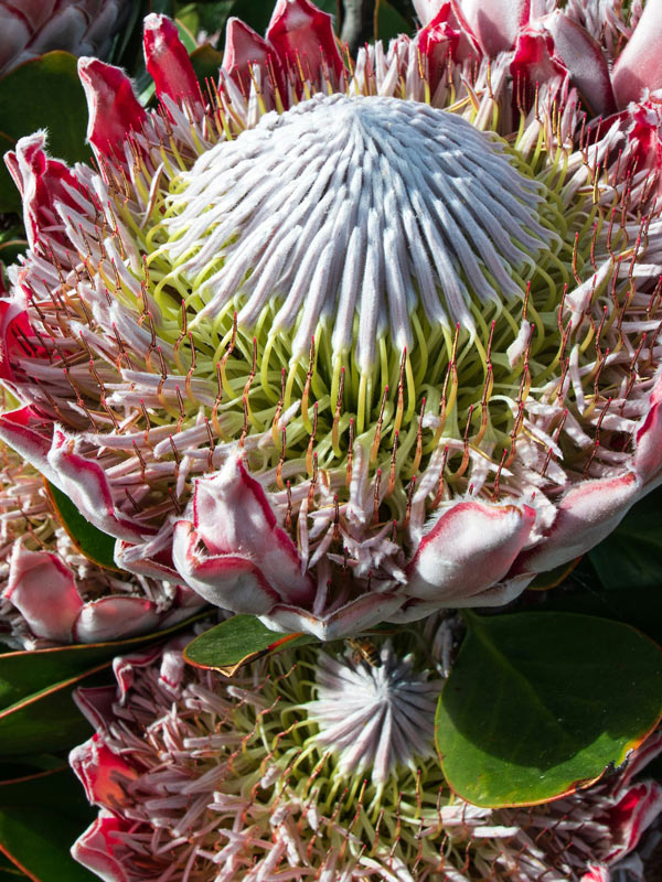 Der Blick von oben auf eine Artischocke oder Protea legt das Innen offen, ohne es preiszugeben.